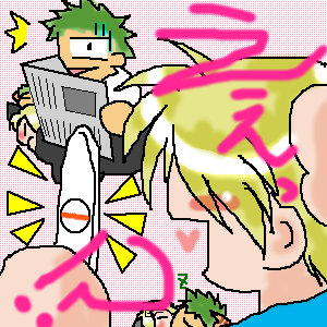 「うっし、ちょっとの間だけ動くなよ〜〜。」 「いや、猫相手にその注文は無理なんじゃねぇか?」 「バカヤロウ!最初っから無理って決め付けちゃァ駄目なんだよ! もっと、向上心をもて向上心を!」 「はいはい・・・。」 「はい、ち〜ず!・・・って、おおー!いーんじゃねー?? 俺ってばウソップよりもカメラマンの才能あるかもしれねーぜvv」 「・・・サンの顔映ってねーじゃねェか。」 「うっせーーーー!!」 「こりゃぁ、今年の年賀状はウソップの写した奴使うしかねーな。」 結局のところ・・・収まるべきところに収まるのですv おしまい |